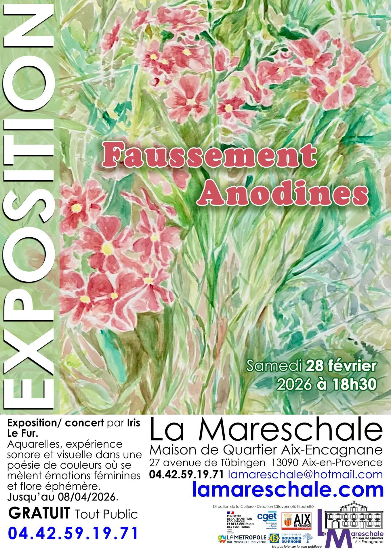 L’exposition Faussement Anodines, menée entre 2023 et 2025, présente une série d’aquarelles